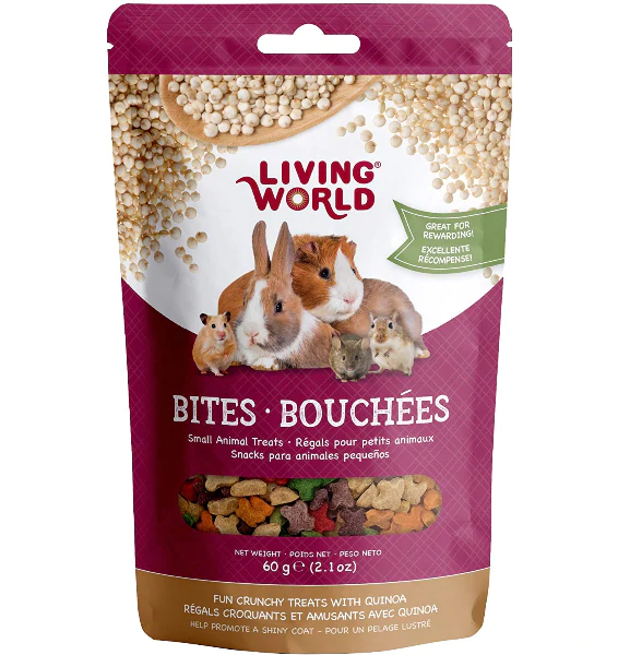 Living World Bites are fun, crunchy treats with a savory taste, making them great for training and rewarding your small pet. Try hiding them around their habitat to entice their natural instinct to forage and nibble.